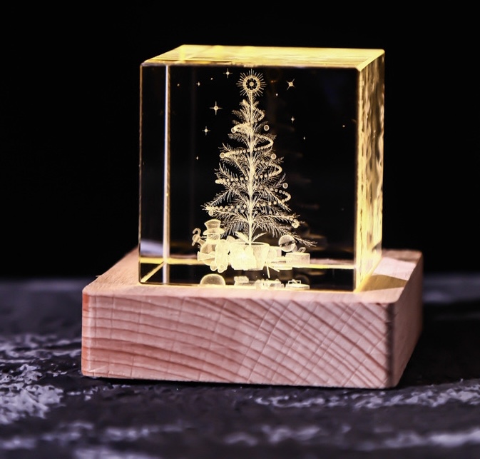 🔮Crystal cube carved Christmas tree creative ornaments✨