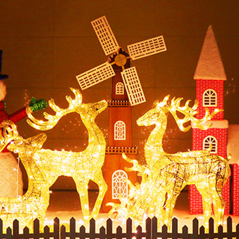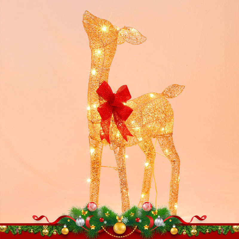 These elegant outdoor Christmas decorations have a sparkly gold ribbon around each deer's neck and a collapsible stand on its back.