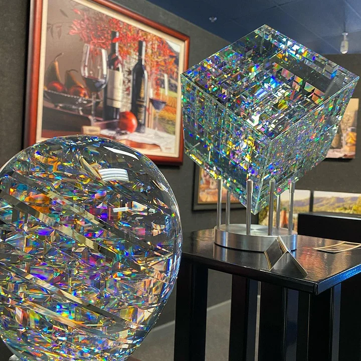 💎Beautifully Decor: The Magik Chroma Cube features a very intricate triple cut core making it a cube sculpture like nothing you’ve ever seen before. The Aerial refracts, reflects and casts colored shadows. Each Angle shines beautifully in a different way.